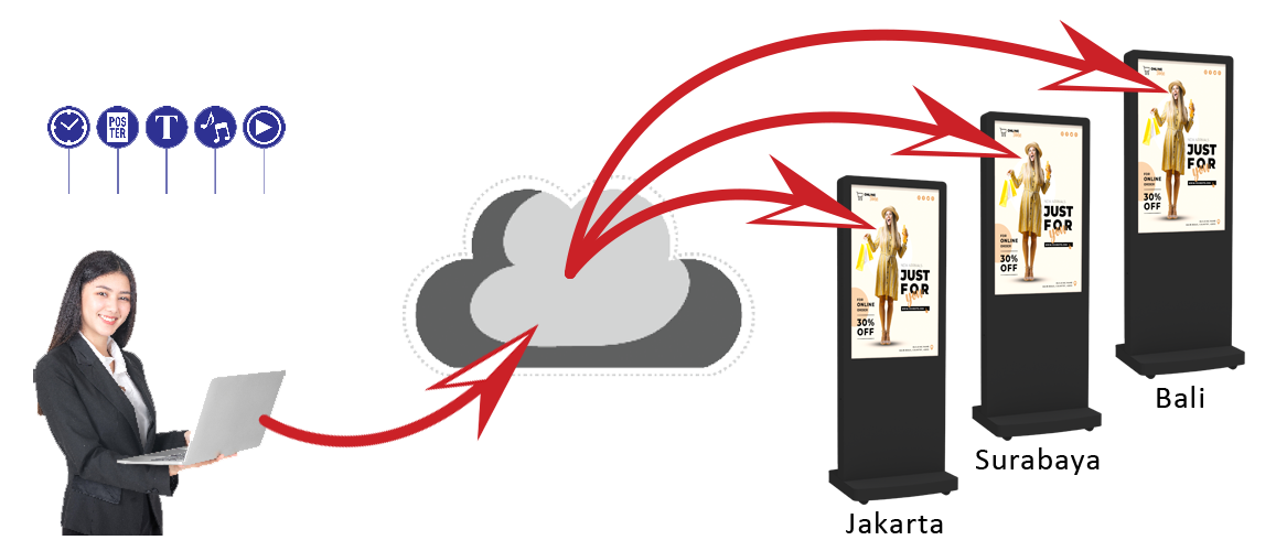 Saat ini mulai berkembang media promosi dengan menggunakan digital signage. Keunggulan menggunakan Digital Signage untuk Retail adalah: