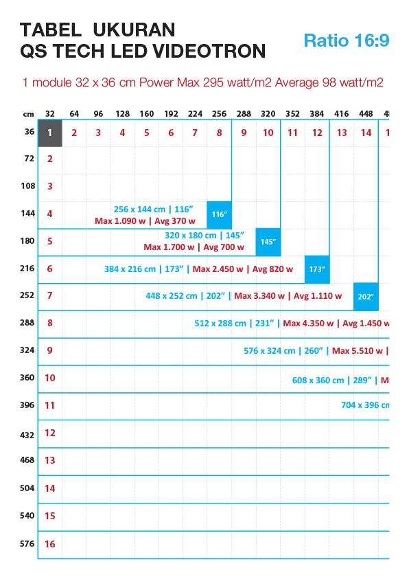 Tabel Ukuran QS TECH LED Videotron. Ratio 16:9