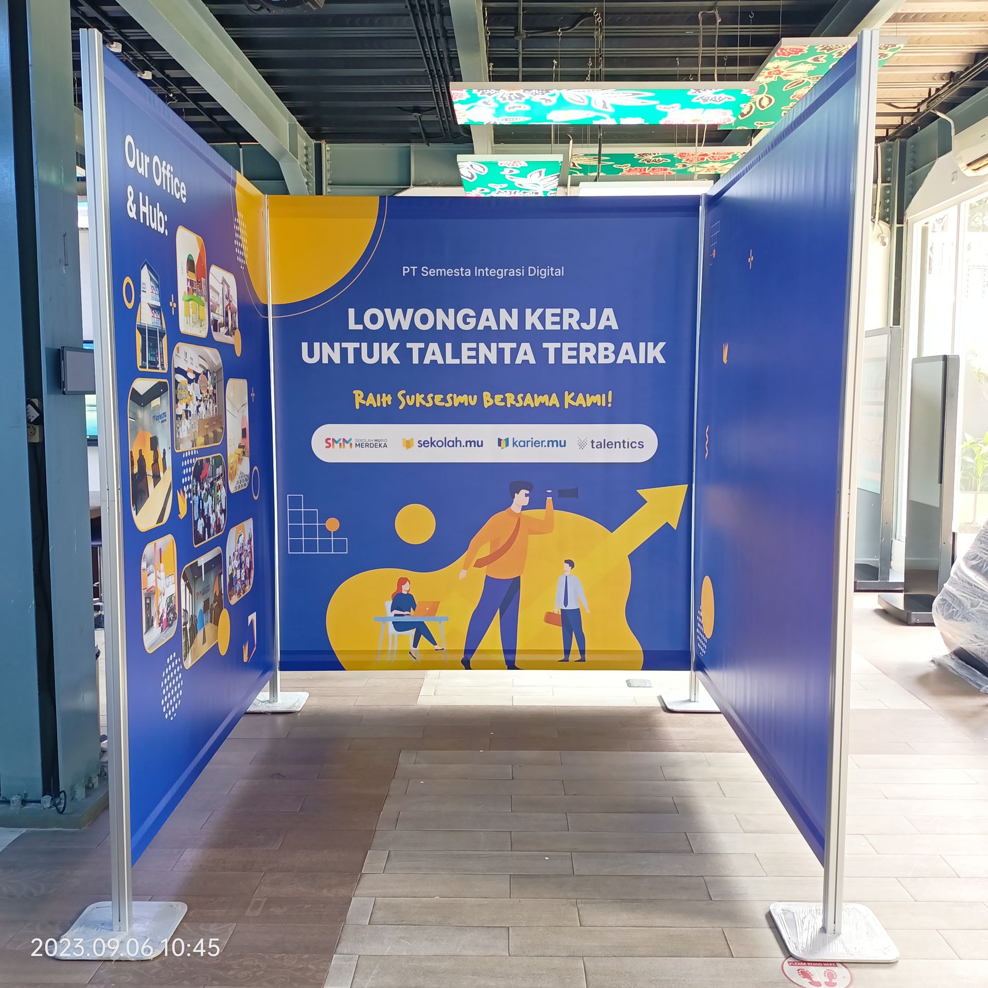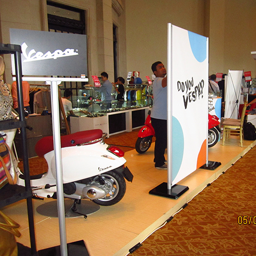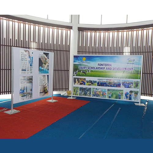Flexi Display Backwall merupakan Local Development dari InnoGRAPH untuk jenis produk backdrop/backwall yang mempunyai ciri khas kuat, kokoh dan mudah dalam perakitan karena memakai tiang alumunium extrution yang didesain sendiri oleh team InnoGRAPH. FD Backwall mudah dikonfigurasi dalam berbagai bentuk yang dapat disesuaikan dengan kebutuhan customer.