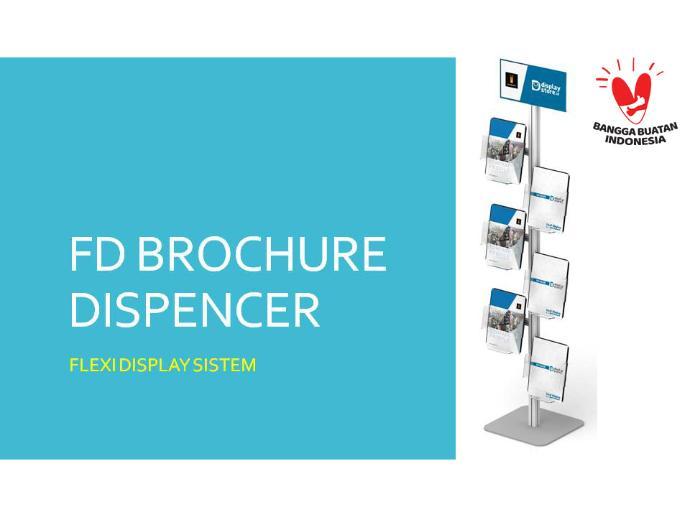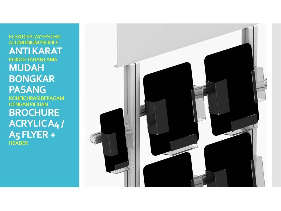 Flexi Display Brochure Dispencer merupakan salah satu produk inovatif dari InnoGRAPH dengan memakai sistem Flexi Display ( Alumunium Profile Extrusi ) sehingga tiang menjadi kuat, kokoh dan tidak berkarat. dapat di bongkar pasang menggunakan Kunci L. terdapat Acrylic header untuk menempatkan Branding produk anda.