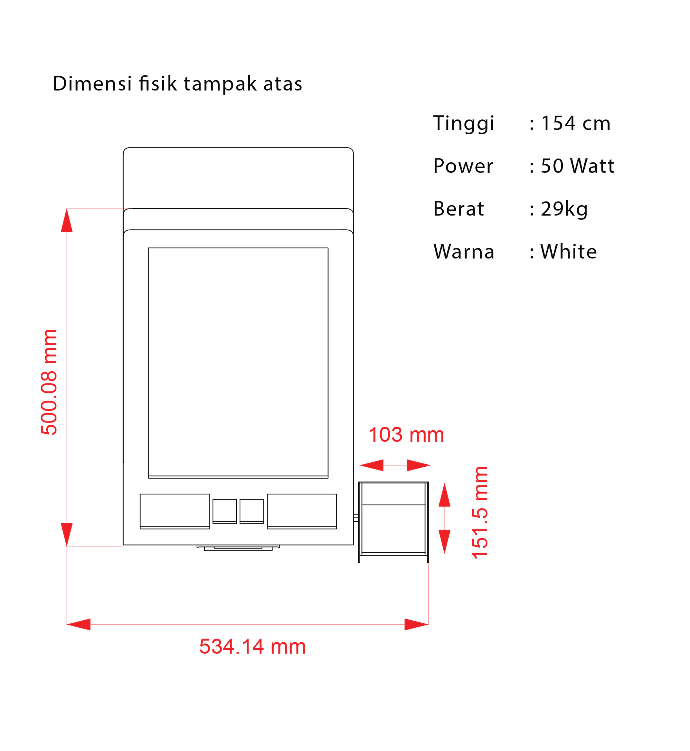 Packed in a kiosk model with ergonomic design, full HD display, operability, and easy maintenance, SSK is appropriate to be placed in a public space. Basic Kiosks are equipped with a capacitive touch screen 21.5 inches in portrait mode, face camera, and 3 processor options (Android, Intel i3, or Intel i5 vPro with Windows 10 Operating System), WIFI, and an optional 4G module