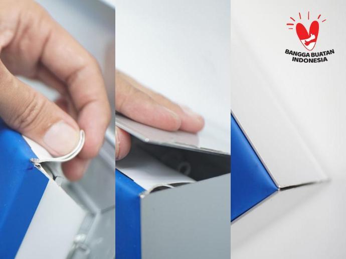Lightbox tipis ketebalan cuma 1,5 cm dengan sistem Click/Snap sehingga mudah mengganti gambar.