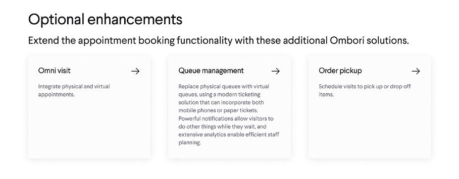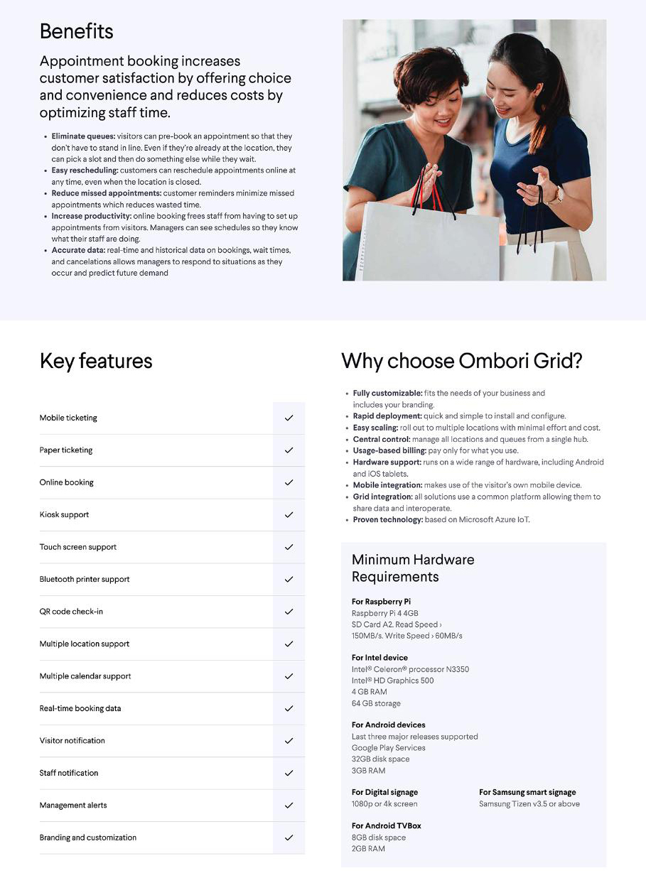 Flexible Appointment Booking seamlessly manages a mix of pre-booked appointments and walk-in tickets. Combine with Queue Management, Occupancy Control, People Counter, Omni Visit, and Digital Signage to create a full-featured visitor management solution.